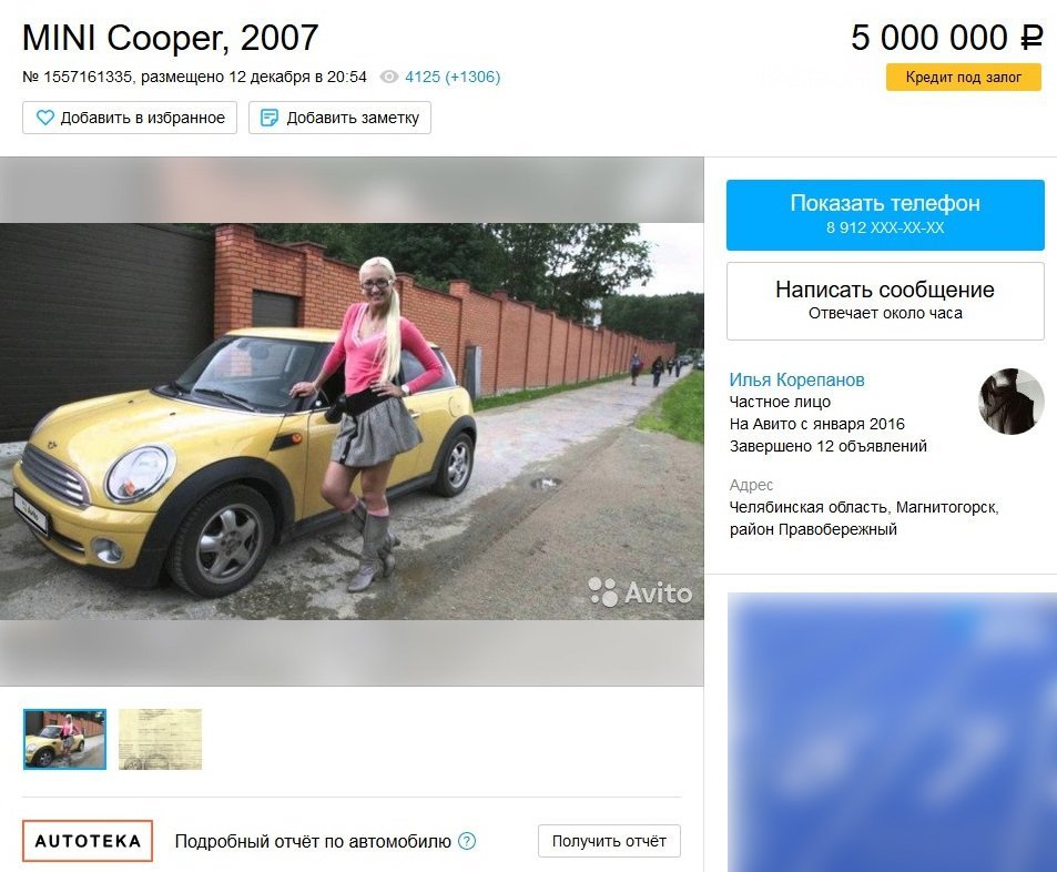 Первым автомобилем Ольги был желтый английский Mini Cooper (от 1,5 млн рублей). Его она приобрела, когда стала телеведущей «Дома-2». На этой машине девушка ездила пару лет, а затем выставила ее на продажу.