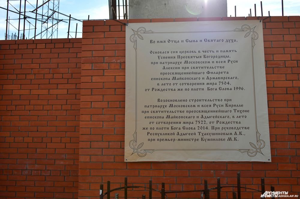 Епископ Майкопской и Адыгейской епархии Тихон в ходн мероприятия поблагодарил представителей власти республики за помощь в строительстве собора. На его возведение в течение года республика направила 6,6 млн. рублей и 80 тыс. кирпичей. В результате удалось начать укладку стен Свято-Успенского сбора.