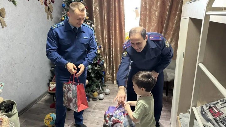 Работники прокуратуры Темрюкского района совместно с сотрудниками отдела Следственного комитета поздравили семьи участников специальной военной операции с наступающим Новым годом.