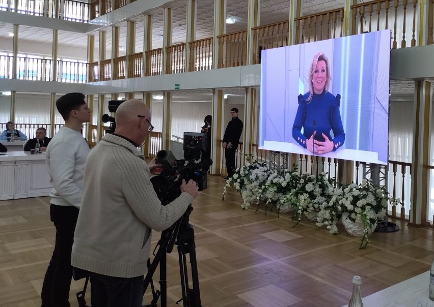 В режиме видеоконференции к участникам съезда обратилась представитель МИД России Мария Захарова.