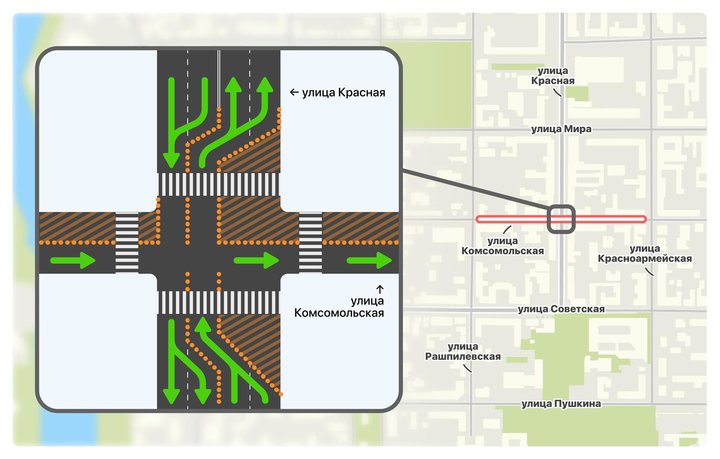 - Для этого будет ограничено движение транспорта по одной из двух полос на участке улицы Комсомольской от улицы Рашпилевской до улицы Красноармейской, а также будет изменена организация движения на перекрёстке улиц Красной и Комсомольской, - уточнили в Департаменте транспорта и дорожного хозяйства Краснодара.