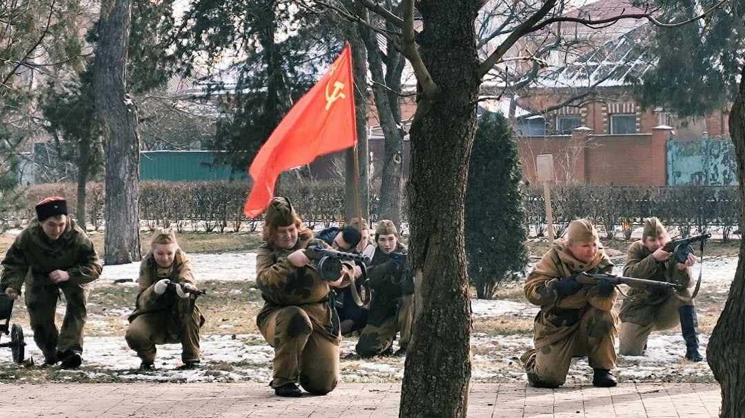 В сквере имени Льва Толстого прошло театрализованное представление «Знамя Победы над городом» к 83-летию со дня освобождения Краснодара от немецко-фашистских захватчиков.