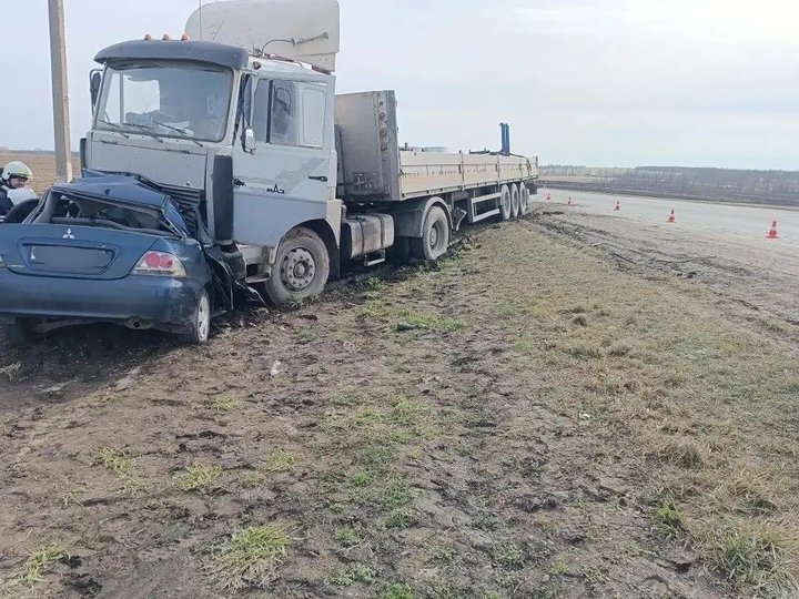 В Брюховецком районе на автодороге «Краснодар-Ейск» 99 км + 500 м 22 февраля в 12.15 по московскому времени водитель автомобиля «Мицубиси Лансер», выполняя обгон в месте, где разрешено, не убедился в безопасности маневра и допустил столкновение с грузовым авто МАЗ с полуприцепом, который двигался во встречном направлении.
