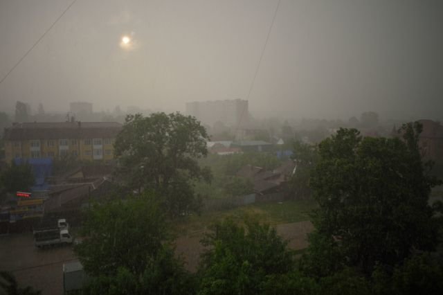 Утром и днём в отдельных районах сильный дождь, ливень в сочетании с грозой и сильным ветром с порывами 20 м/с (КМЯ).