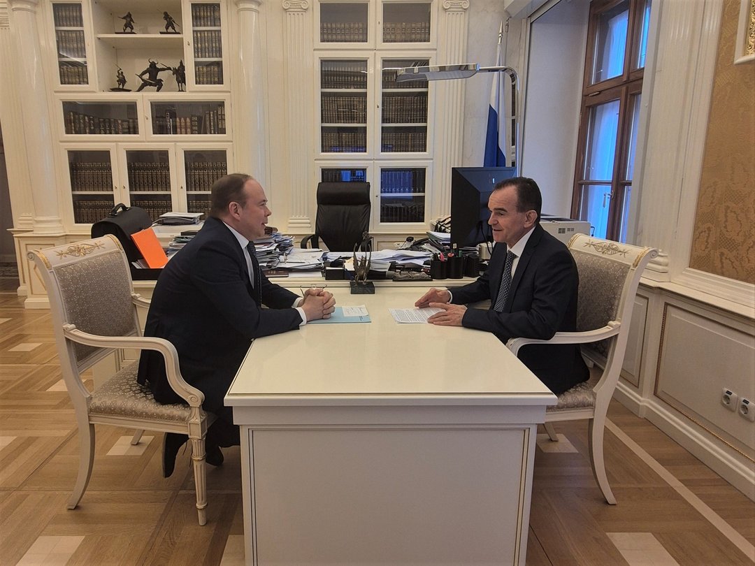 Губернатор Краснодарского края Вениамин Кондратьев встретился с руководителем Администрации Президента России Антоном Вайно.